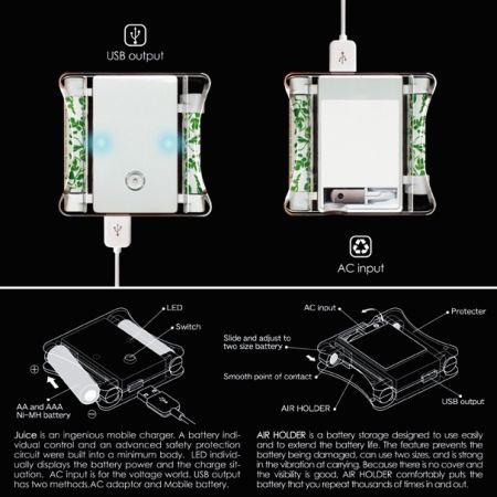 這款充電器有兩個接口,可以通過普通電源或是USB接口給充電電池補(bǔ)充電量。也正因?yàn)橛辛薝SB充電接口,它還能給各種電子設(shè)備補(bǔ)充電量。而放置充電電池的凹槽也可以進(jìn)行調(diào)整,能夠?yàn)?號和7號電池充電。
