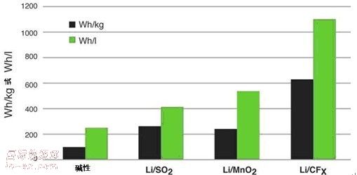 Li/CFx電池為3V系統,CFx穩定并可耐400 °C,在主要的鋰電池系統中具有最高的能量密度。