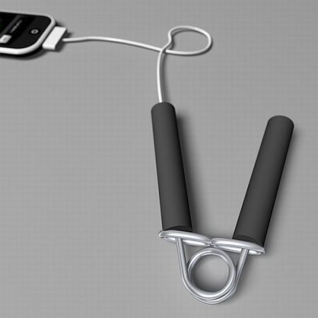 這是一款將握力器整合于動能充電設備中的產品。它將健康、能源、環保集于一身,是一款超級綠色的能源設備。