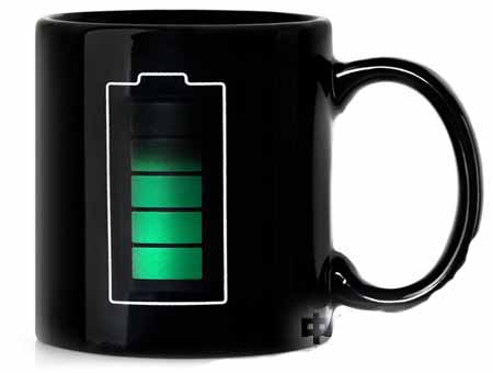 可能每個人都會遇到一個問題,當你相當喝水的時候往往忽略了水的溫度而燙到舌頭,被燙之后的心情可算是糟透了,如果能知道杯中的溫度的話,那就另當別論了。由國外的設計師就突發奇想,在杯子上裝上一個溫度傳感器,杯子夾層中灌入了水銀,就跟體溫表的原理一樣,水銀會根據杯子的溫度上下浮動,更有趣的是在把顯示框弄成了一個大號的電池模樣,相當的有趣