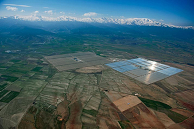 遼闊的地形已經(jīng)被安達(dá)盧西亞農(nóng)場分成格子,安達(dá)索爾1和2像農(nóng)作物一樣依靠同樣的能源。植物通過光合作用儲存太陽能,太陽能設(shè)施則通過白天收集陽光加熱數(shù)千噸的熔鹽,而日落之后釋放熱能生產(chǎn)7.5小時以上的電力。