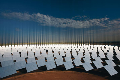 在西班牙南部的一個電廠,鏡子大如房屋,不過也只是捕獲到落在地球上的120萬億瓦的陽光一小部分。由于政府的補(bǔ)貼這一昂貴的有前景能源,所以歐洲有世界上最大的太陽能投資。