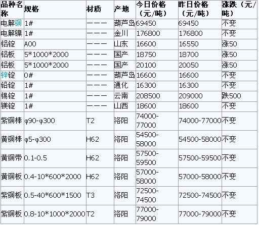 2011年5月31日濟(jì)南有色金屬市場(chǎng)行情