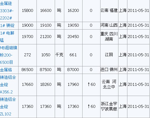 - 2011年5月31日重慶有色金屬市場(chǎng)行情
