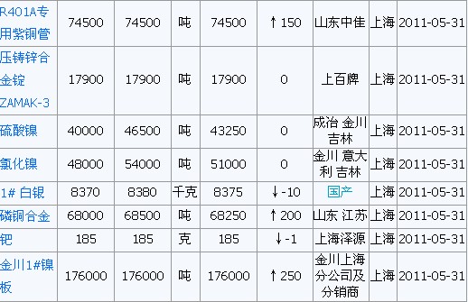 - 2011年5月31日無(wú)錫有色金屬市場(chǎng)行情