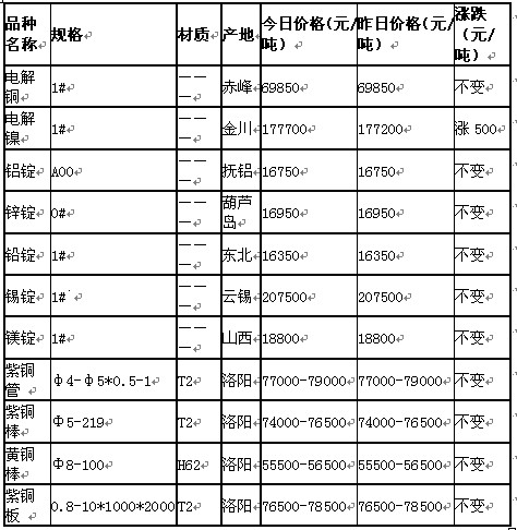 2011年6月1日沈陽有色金屬市場行情