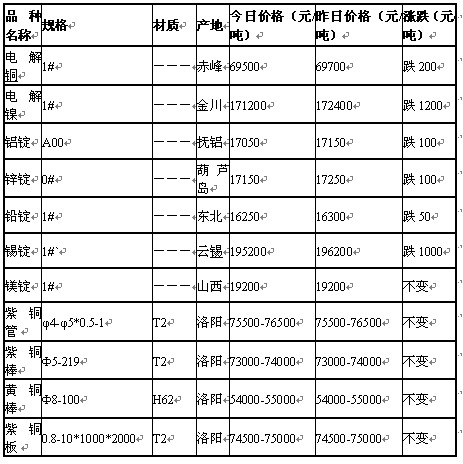 2011年6月16日沈陽(yáng)有色金屬市場(chǎng)行情