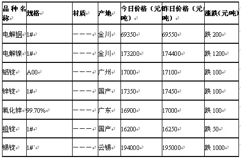 - 2011年6月16日沈陽(yáng)有色金屬市場(chǎng)行情