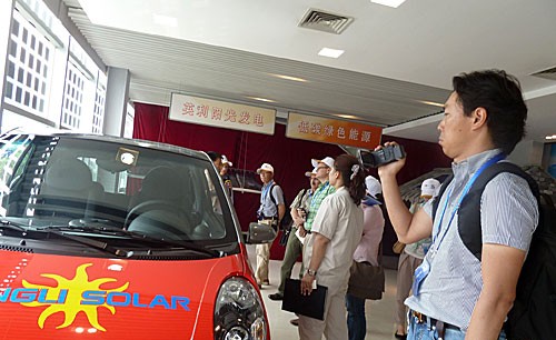 中外媒體參觀世界首塊車頂用太陽能電池