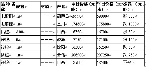 上一篇: 2011年6月3日長江有色金屬現貨上午快訊(銅鋁鉛鋅錫鎳) 下一篇:  沒有了