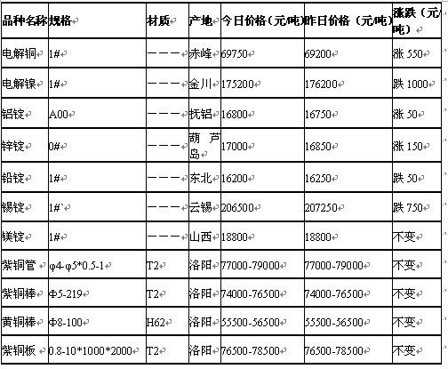 2011年6月3日沈陽有色金屬市場行情