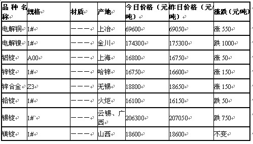 2011年6月3日無錫有色金屬市場行情