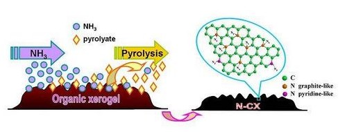 該研究通過在炭干凝膠中原位引入吡啶型N和石墨型N,改變了原有碳原子的電子結構,增加了相鄰碳原子的供電能力,活化的碳原子能夠直接吸附并還原氧分子,對氧還原反應具有較高的選擇性。該研究開發的氮摻雜納米僅含痕量的過渡金屬組分,碳結構中暴露出的大量邊緣缺陷,為催化氧還原反應提供了較多的活性位點,使氮摻雜炭基非Pt催化劑具有較高的氧還原反應催化活性、穩定性和抗甲醇毒化能力。在酸性條件下該催化劑的電化學穩定性優于Pt/C催化劑。在堿性燃料電池體系中,該氮摻雜納米炭催化劑的催化活性和Pt/C活性相當,且其穩定性優于Pt/C催化劑。