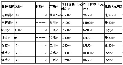 上一篇: 2011年9月15日廣東有色現貨報價(南儲)(銅鋁鉛鋅鎳鈷鎘錳鎂鉍)