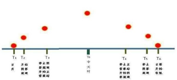 其中T2,T3及T4,T5是隨日期的變化而變化,因此跟蹤系統軟件算法都會計算出當天的日出開始陰影規避時間T2和日出停止陰影規避時間T3,日落開始陰影規避時間T4和日落停止陰影規避時間T5。