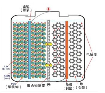 LiFePO4電池在充電時(shí),正極中的鋰離子Li+通過(guò)聚合物隔膜向負(fù)極遷移;在放電過(guò)程中,負(fù)極中的鋰離子Li+通過(guò)隔膜向正極遷移。鋰離子電池就是因鋰離子在充放電時(shí)來(lái)回遷移而命名的。
