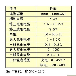 磷酸鐵鋰動(dòng)力電池主要性能列于表1。為了與其他可充電電池的相比較,也在表中列出其他種類可充電電池性能。這里要說(shuō)明的是,不同工廠生產(chǎn)的磷酸鐵鋰動(dòng)力電池在各項(xiàng)性能參數(shù)上會(huì)有一些差別;另外,有一些電池性能未列入,如電池內(nèi)阻、自放電率、充放電溫度等。