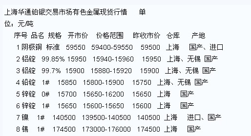 2012年2月24日上海華通有色金屬現(xiàn)貨行情
