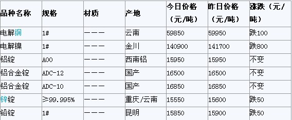 2012年3月1日重慶有色金屬市場行情