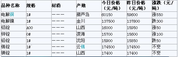 2012年3月16日北京有色金屬市場行情