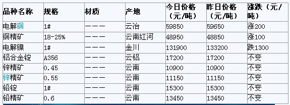 2012年3月30日昆明有色金屬市場(chǎng)行情