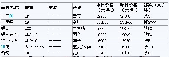 2012年4月5日重慶有色金屬市場行情