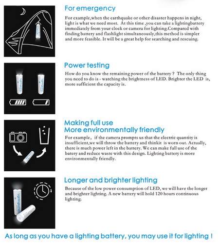 這是一款帶LED燈泡的電池LightingBattery,外殼有一個開關,需要緊急照明的時候只需要一節電池就可以了。