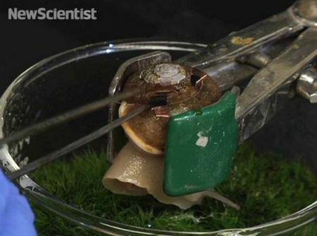 研究人員實驗視頻演示“發電蝸牛”,在這段獨特視頻中,人們可以觀看蝸牛如何轉變成為一個發電機。穿過蝸牛殼的裂縫,涂有酶的電極插入蝸牛的身體中,蝸牛血液中的葡萄糖和氧氣將變成燃料產生電能,連接電極的另一端連接至一個外部電路。