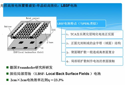 LBSF電池是深結局部背場 (Local Back Surface Fields)電池的簡稱,由德國Fraunhofer研究所研發,2cm×2cm電池效率達到? =23.3%