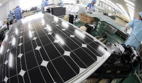 資料圖:江蘇南通一光伏企業職工在生產太陽能電池組件。