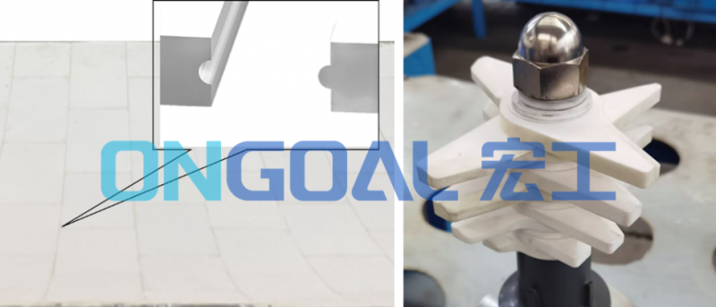 宏工科技針對此類痛點對產品升級迭代,自研的犁刀混合機筒體陶瓷內襯采用行業首創的互鎖式專利結構,陶瓷片間無縫隙,不脫落,使用壽命長。飛刀選用純氧化鋯材質亦為行業首創,增強飛刀耐磨性,飛刀緊固螺母選用鈦合金蓋型螺母,降低磨損帶來的金屬磁性異物污染風險,同時減少維護及更換次數,使整機設備更耐用。